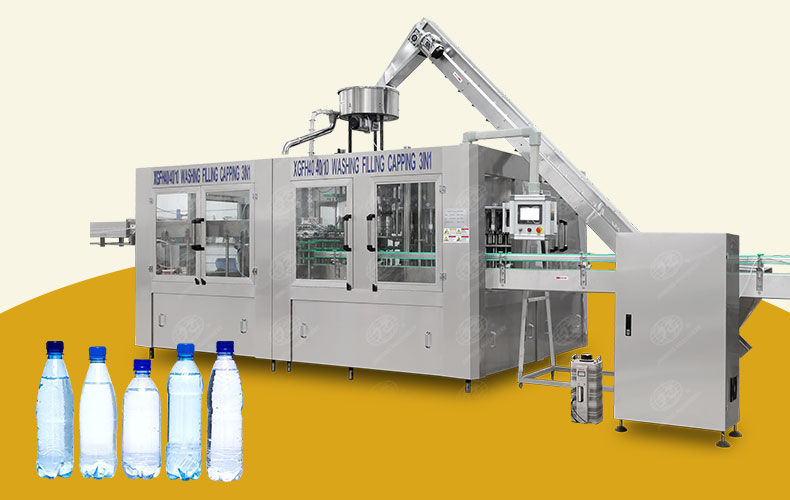 金榮灌裝機械供應的200ML-2L小瓶飲用水灌裝機集清洗-灌裝-封蓋三合一于一體,可用于PET瓶或玻璃瓶灌裝純凈水、礦泉水、飲用水、果汁等。...