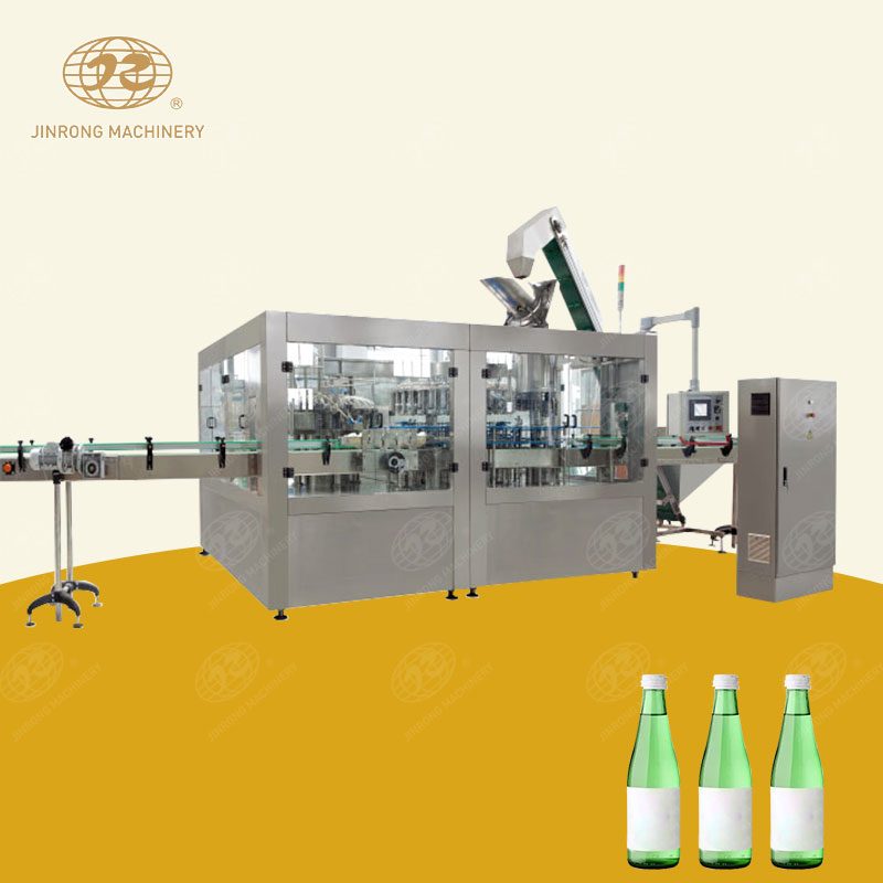 玻璃瓶果汁灌裝機主要用于玻璃瓶果汁飲料的生產(chǎn),成套玻璃瓶果汁生產(chǎn)線適合芒果汁、藍莓汁、桑葚汁、菠蘿汁、檸檬汁、柚子汁等。在玻璃瓶灌裝一體機上實現(xiàn)沖洗,灌裝,三旋蓋和四旋蓋等封口的功能。玻璃瓶果汁灌裝機械具有結(jié)構(gòu)緊湊、占地面積小、設(shè)計科學合理、造型美觀、操作維修方便,自動化程度高等特點,適合中小型果汁廠。玻璃瓶果汁灌裝機采用卡瓶頸懸掛工態(tài)設(shè)計,且采用灌裝閥升降,采用人機界面觸摸屏控制、PLC電腦控制、變頻器控制等技術(shù)。